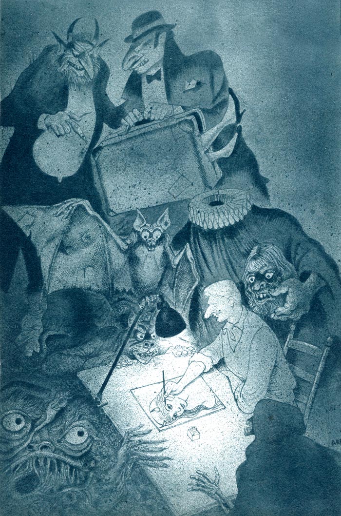 Med sina detaljrika och fantasifulla teckningar har den enormt produktive konstnären Hans Arnold, (1925-2010) fyllt det svenska medvetandet med skräck, sex, sagor och surrealism.