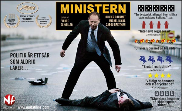 Ministern är en politisk thriller producerad av bröderna Dardenne (Sonen, Pojken med cykeln). I hemlandet har den redan lockat cirka 500 000 biobesökare och belönats med toppbetyg av ledande kritiker som hänförts av Olivier Gourmets storartade insats och jämfört filmen med Vita huset.
