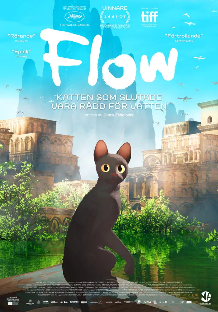 Flow – katten som slutade vara rädd för vatten är en oerhört fint animerad och känslosam äventyrsfilm för både vuxna och barn. där djuren faktiskt får bete sig som djur gör i naturen. Filmen har fått stor internationell uppmärksamhet; premiär i Cannes – Un Certain Regard, den vann publikens pris, bästa musik och juryns pris i Annecy Animation Film festival och den är Lettlands Oscarsbidrag.