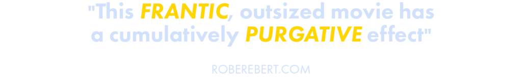 “Den här frenetiska, överdrivna filmen är som ett allt mer intensivt reningsbad“ – RogerEbert .com
