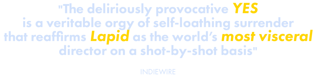 “Den vansinnigt provocerande Yes utgör en sann orgie i självhat och total kapitulation, vilket på nytt bekräftar Nadav Lapid som världens mest kroppsligt intensiva regissör – bild för bild.“ “ – IndieWire